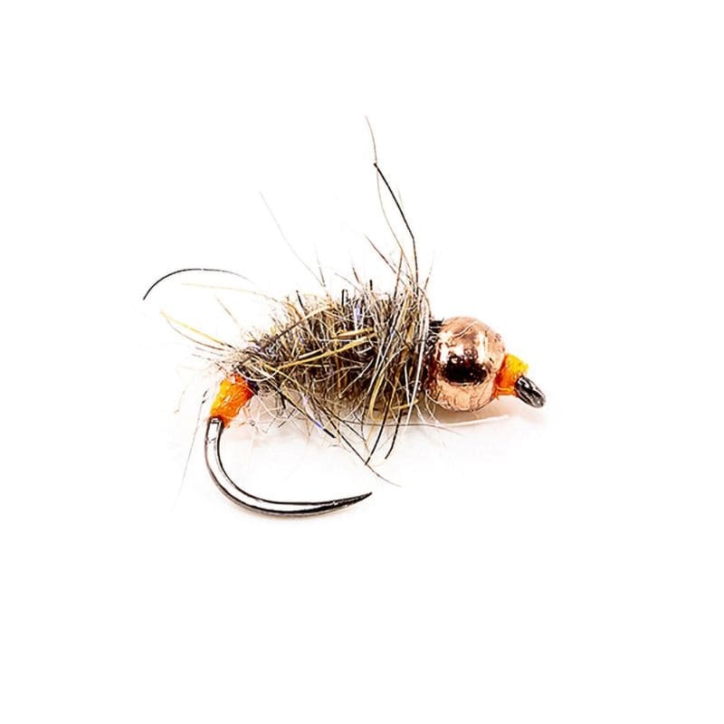 Nymphe Mouches Devaux JBNT 01 est fait avec un dubbing en poil d'oreille de lièvre. La couleur naturelle de cette nymphe amène polyvalence pour les lieux de pêche. La truite et l'ombre ne reste pas insensible par exemple à cette nymphe. Un indicateur orange se situe devant la bille tungstène cuivre et derrière le corps.